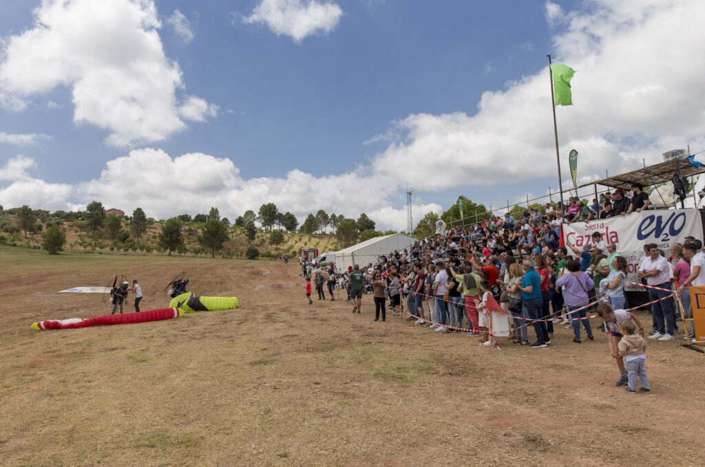 En la jornada de hoy, domingo, han continuado las exhibiciones aéreas, aunque se han desarrollado menos de las previstas debido a las inclemencias meteorológicas, acompañadas del espectáculo musical de Asociación Musical San Isidro Labrador. El día ha comenzado con la XV Carrera de Montaña FIA El Yelmo, organizada junto al Club de Atletismo “Sierra de Segura”, en la que han participado 250 corredores en las categorías de Trail Corto, Trail Largo, PequeTrail y Hike&Fly, en la que los participantes deben subir corriendo hasta la cima del Yelmo con su equipo de vuelo para descender en parapente hasta la línea de meta.
